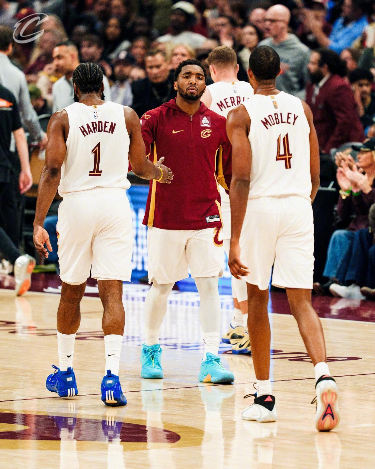 北京时间4月9日,NBA常规赛继续火热进行。骑士坐镇主场与老鹰展开对决,3连胜的克利夫兰志在冲击东部前3的排位。亚特兰大期待巩固东区第5的排名,两大劲旅在此役上演了激烈厮杀。布莱恩特、泰森伤停,阿特金森的首发五虎是詹姆斯哈登、多诺万米切尔、迪恩韦德、莫布里与贾莱特阿伦。兰代尔伤停,老鹰队的首发五虎是CJ麦科勒姆、沃克、丹尼尔斯、杰伦约翰逊与奥孔武。此役是双方本赛季的第3次交手,前两战双方互有胜负。